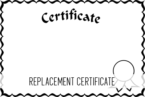If you wish to have us replace your certificate via email. Please complete the form below. Fee is $5 per certificate and we will send you the certificate via email within 1 business day.